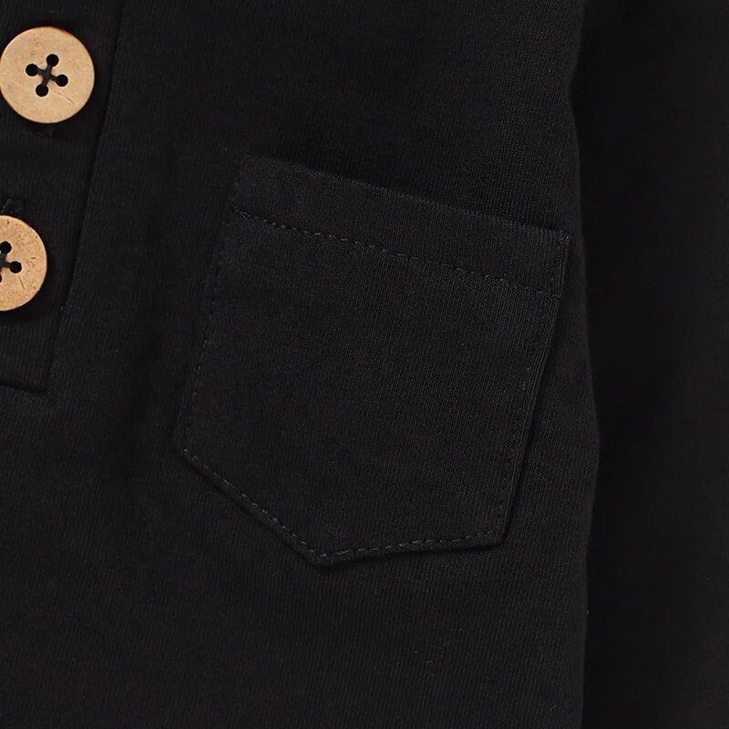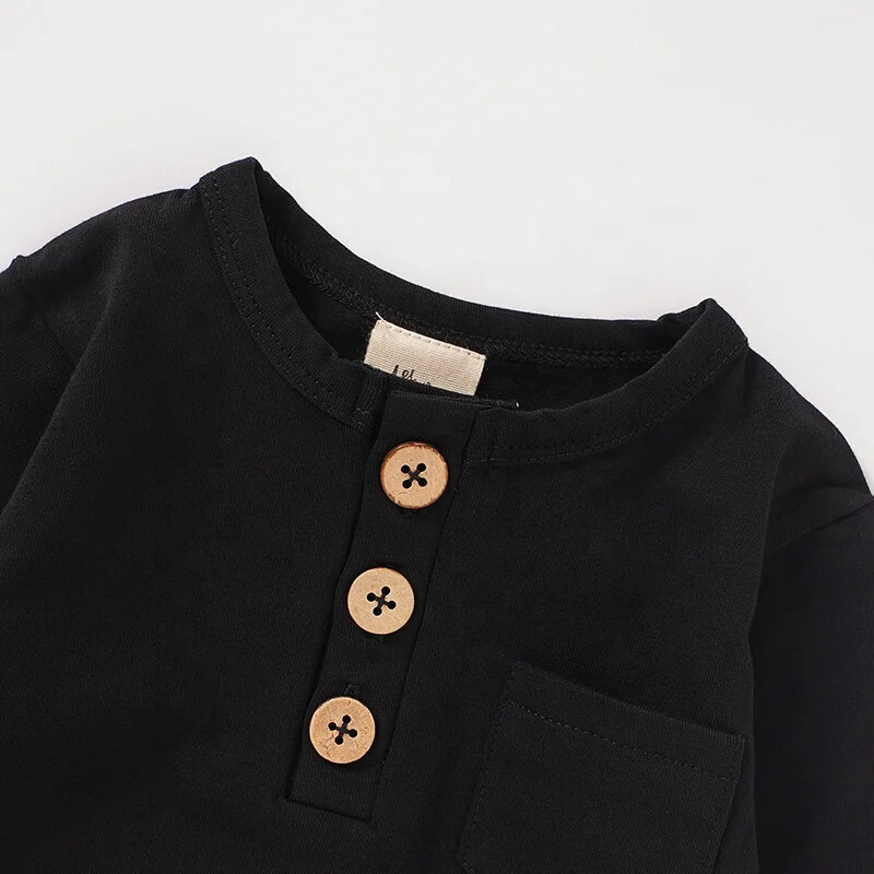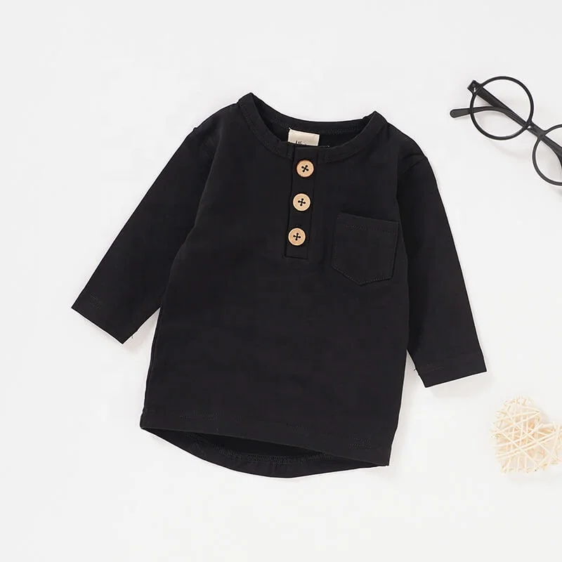 0-24M Long Sleeve Wood Button Plain Cotton Knitted Baby T Shirt