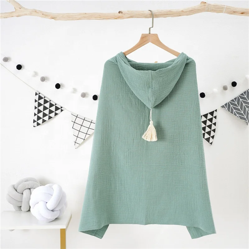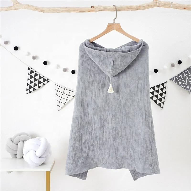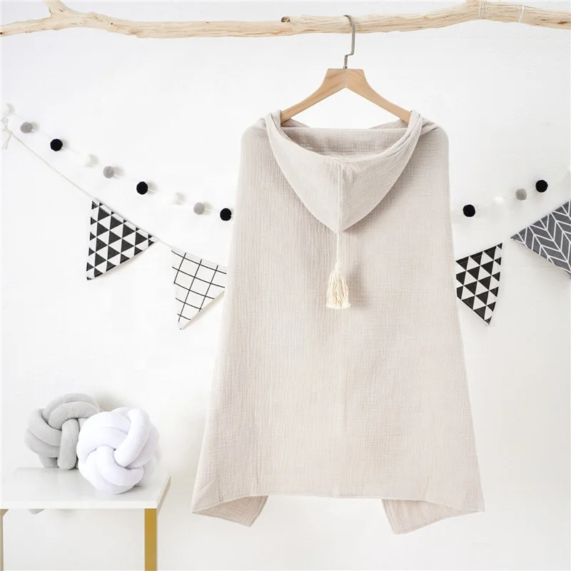 100% Organic Cotton Muslin Baby Bath Towel With Hood and Fringe