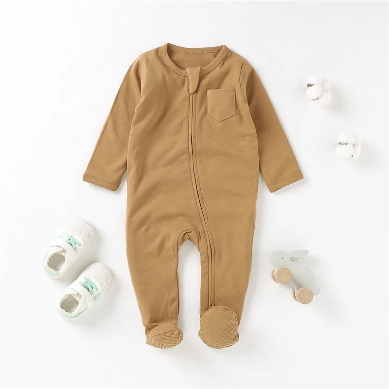 100% Organic Cotton Solid New Born Baby Footed Pajamas