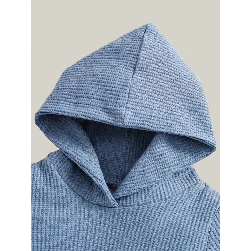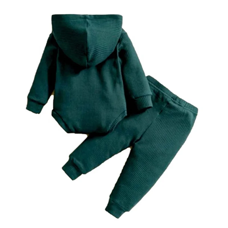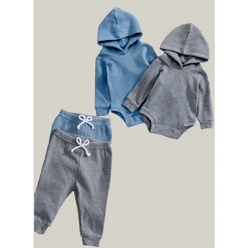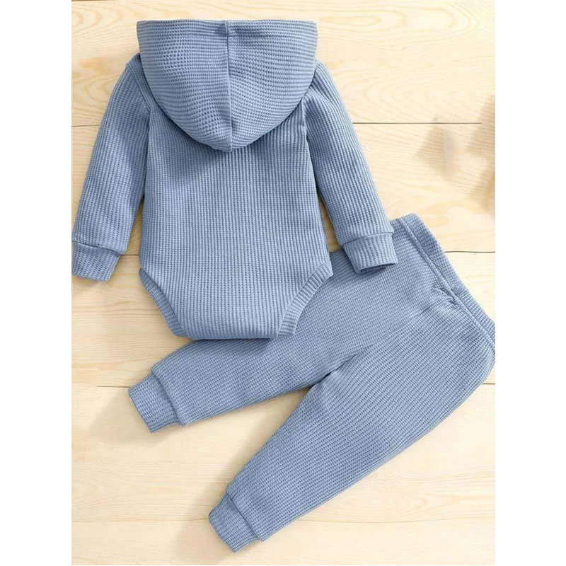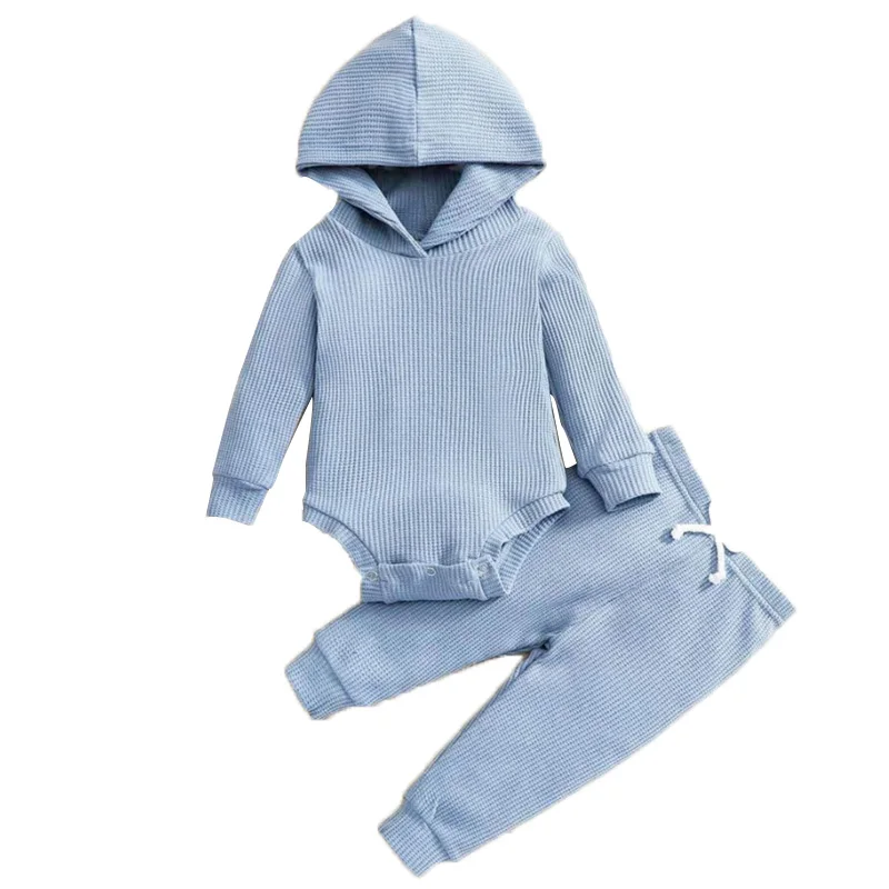Autumn 2pcs Hooded Bodysuit Long Pants Waffle Romper Set Baby Clothing Breathable Anti-Wrinkle European-American Style