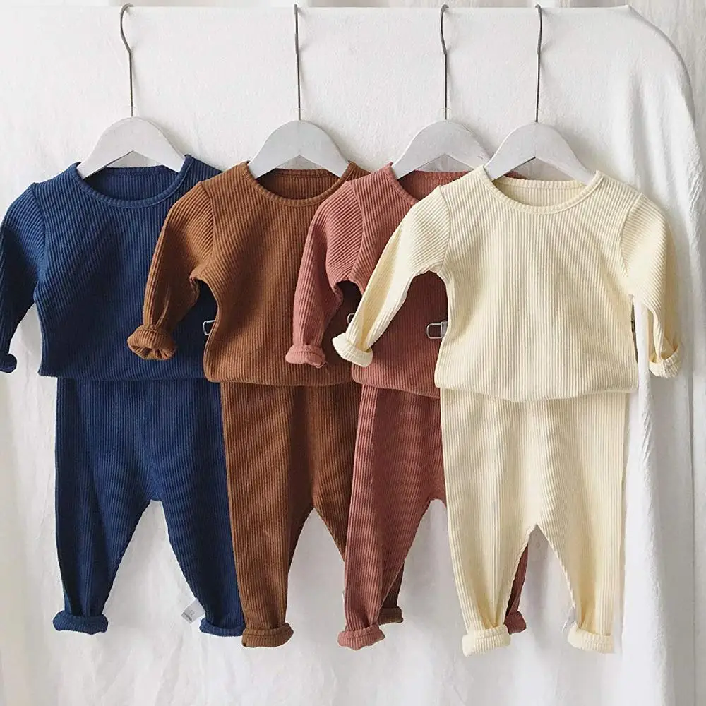 Baby 2pc Set Rib Elastic Sleepsuit Cotton Baby Pajamas Set