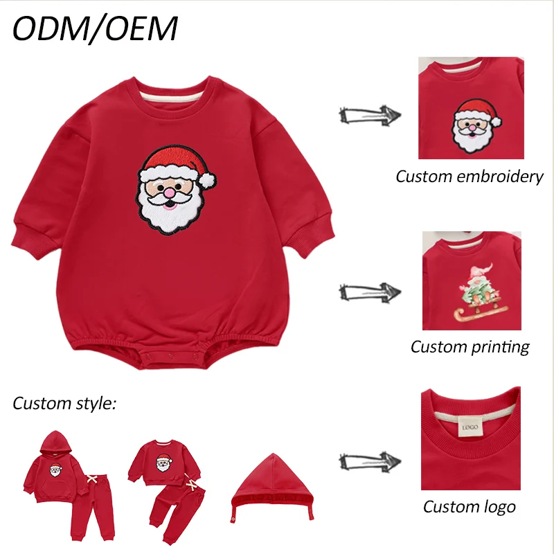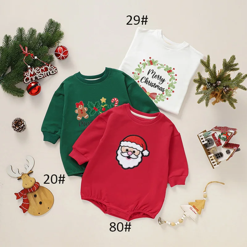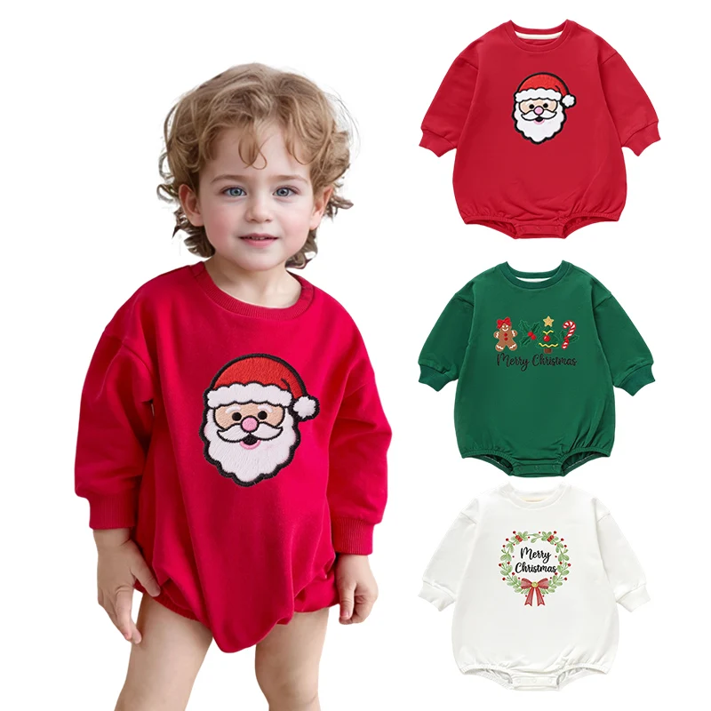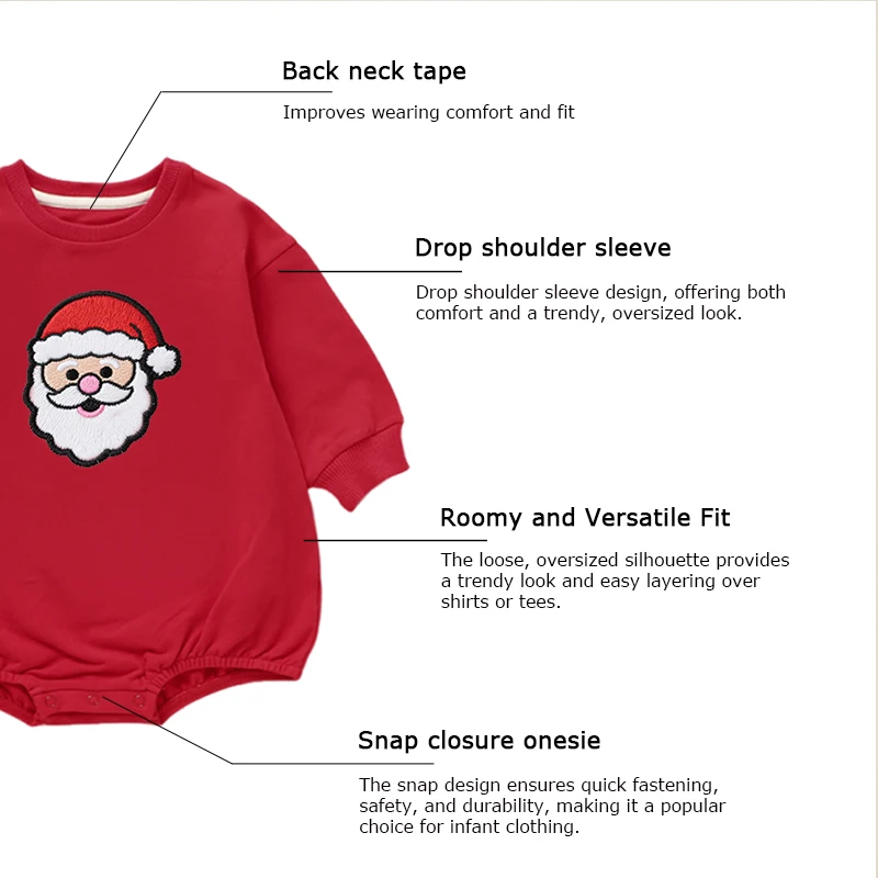 Christmas Clothing Baby Rompers Organic Cotton Support Custom Exquisite Embroidery for Infants & Toddlers