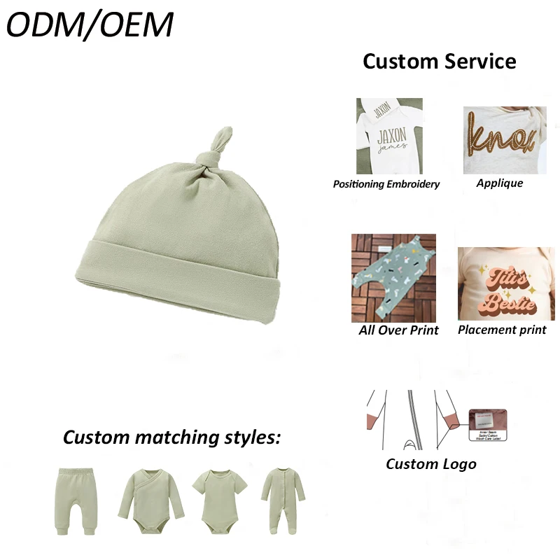 Custom Baby Hat 100% Organic Cotton Cap Embroidery & Printing Available OEM Service