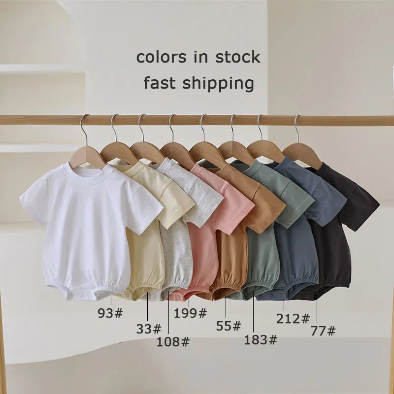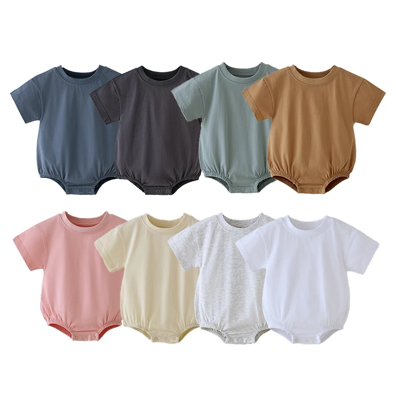 Customized logo From 20pcs Factory Supply 100% Organic Cotton Summer Short Sleeve Blank Clothes Baby Bubble Romper