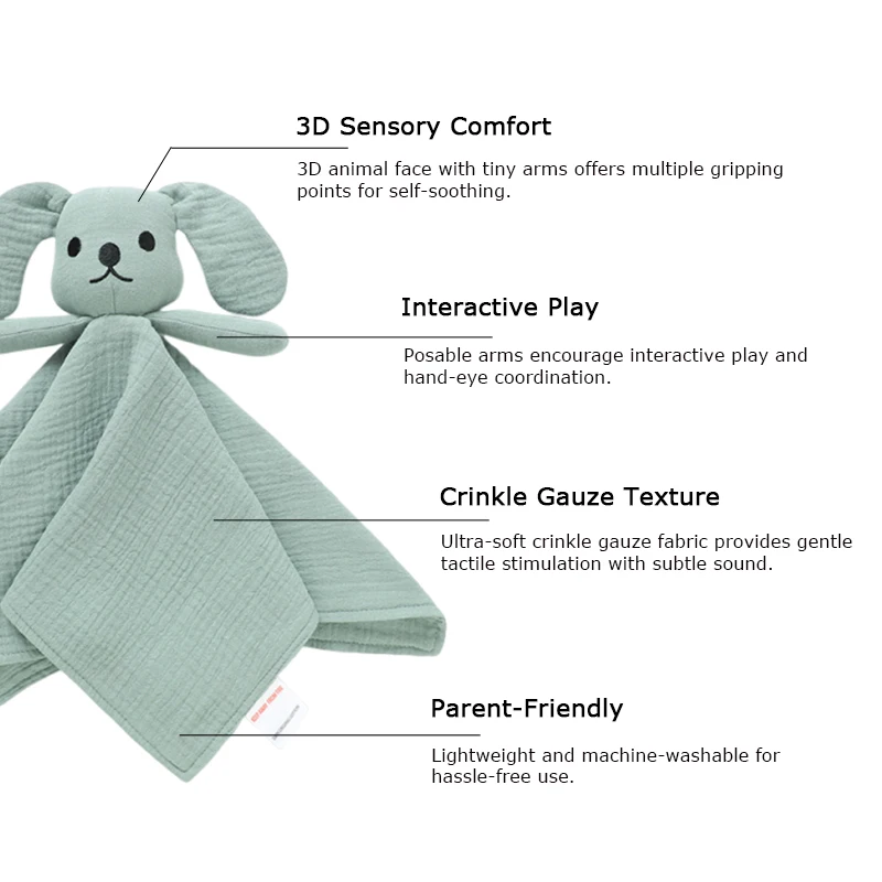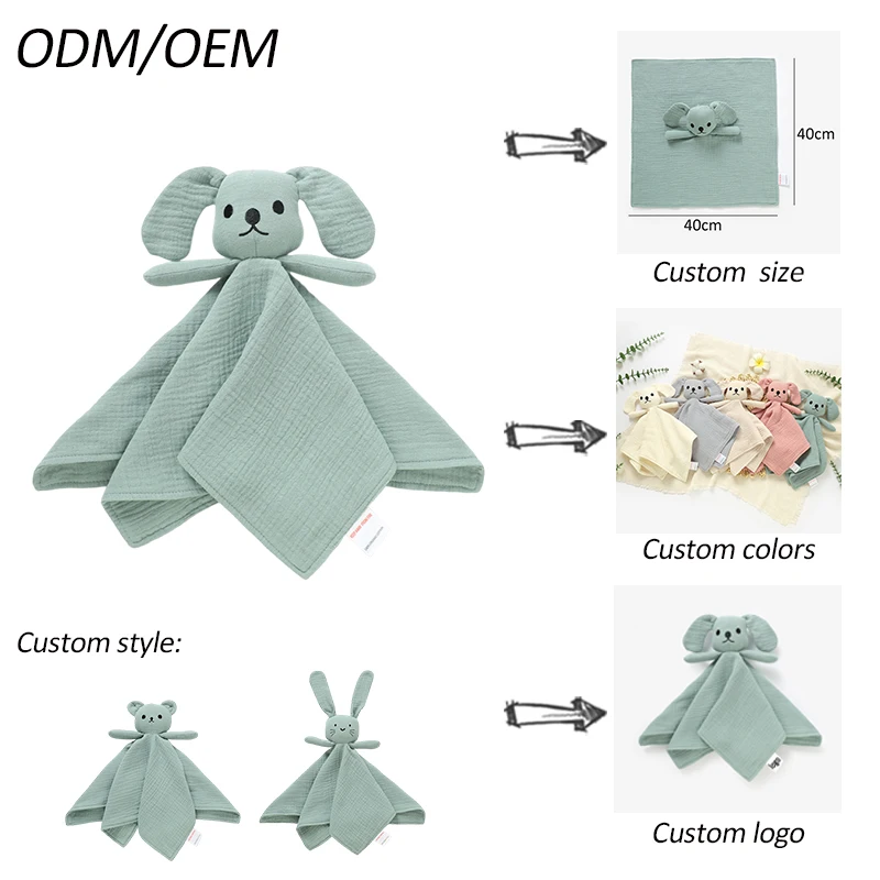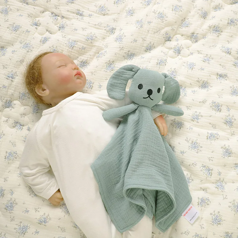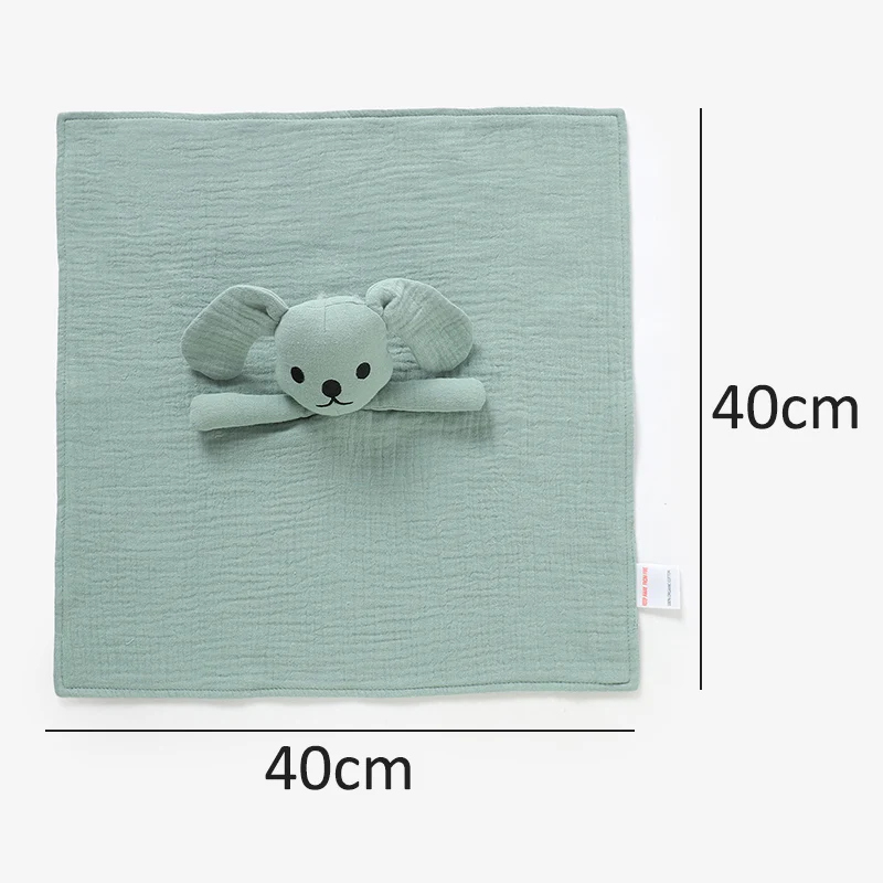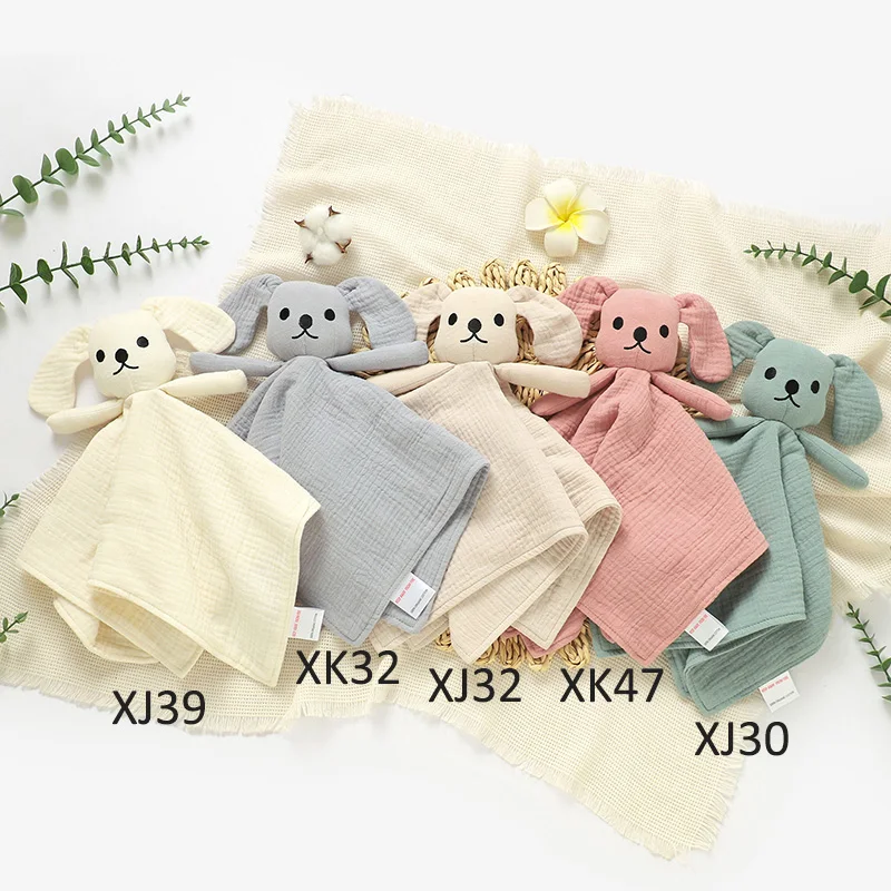 Cute Baby Dog Comforter Blanket Toy 100% Organic Cotton Muslin Crinkle with Stereoscopic Embroidery Soft Baby Comfort Toy