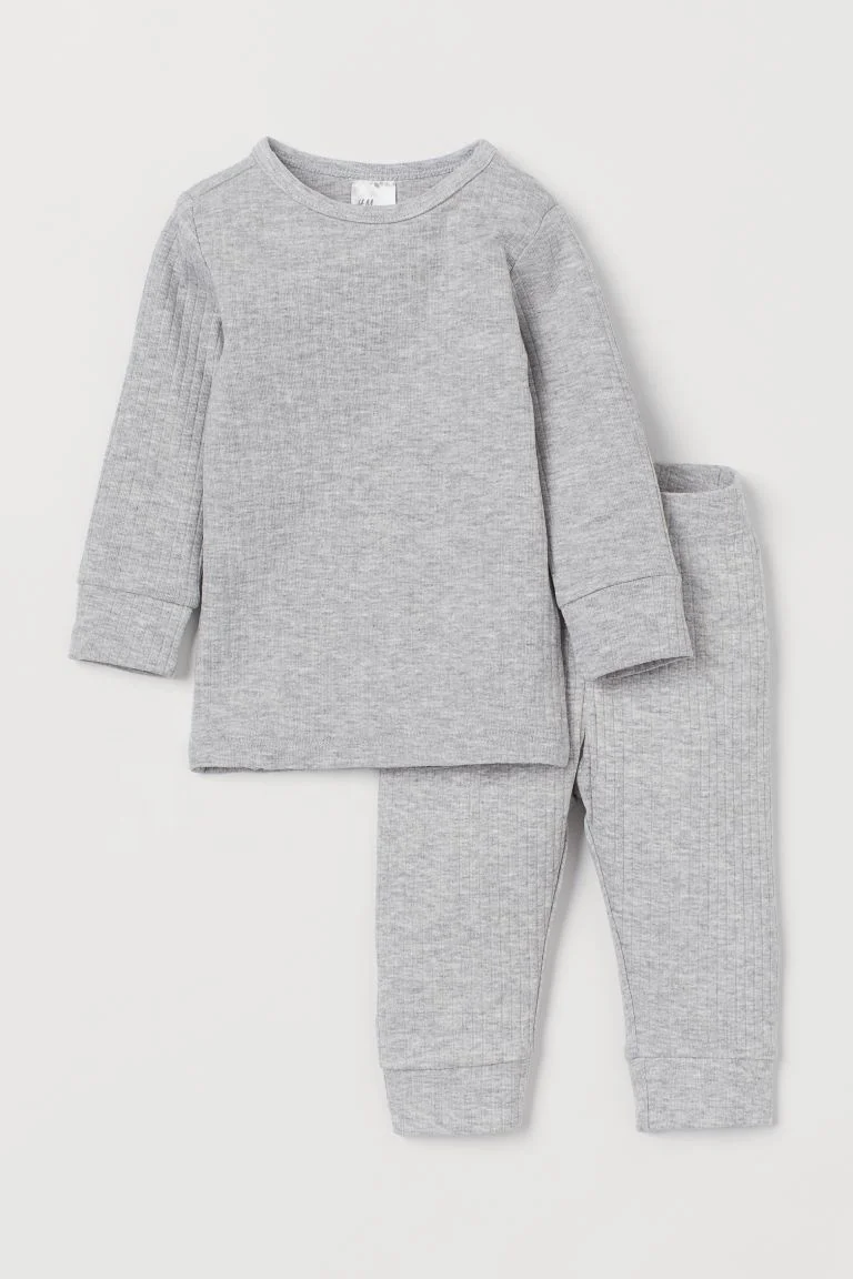 Gender Neutral Unisex Organic Ribbed Cotton 2-piece Set Pajama Set Outfit