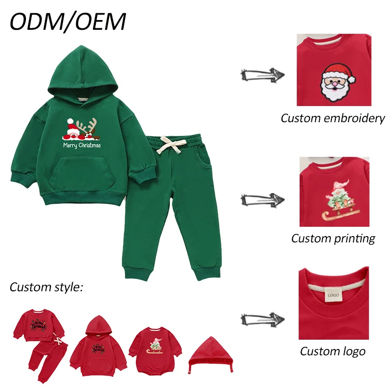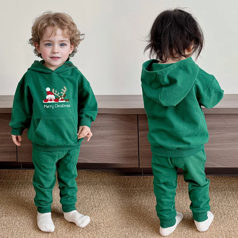 High Quality Products Baby Round Neck Hoodie and Long Pants Comfort Organic Cotton Baby Christmas Clothes Set