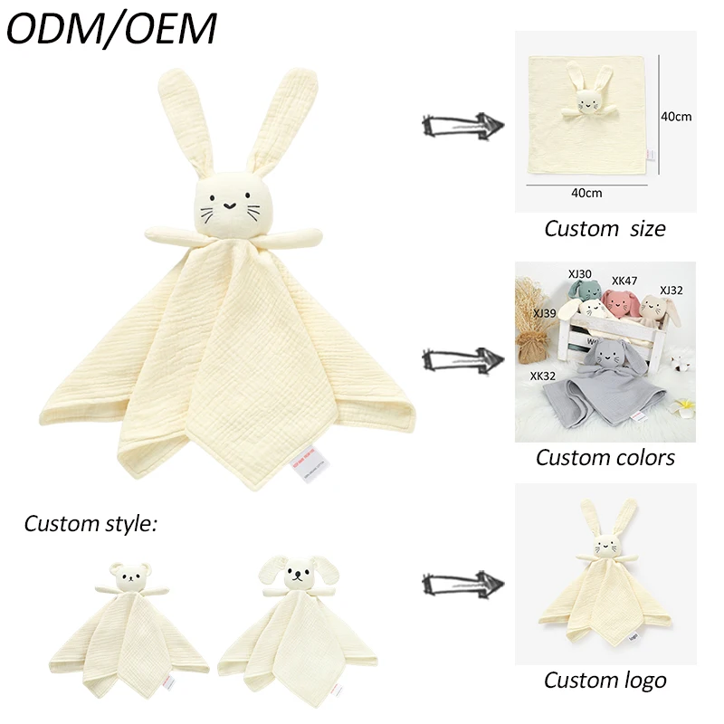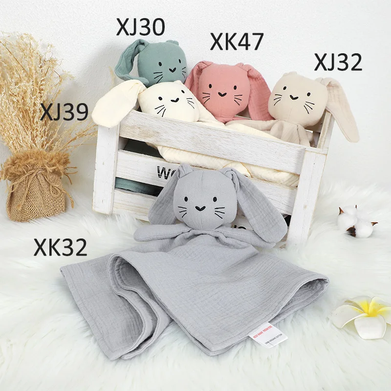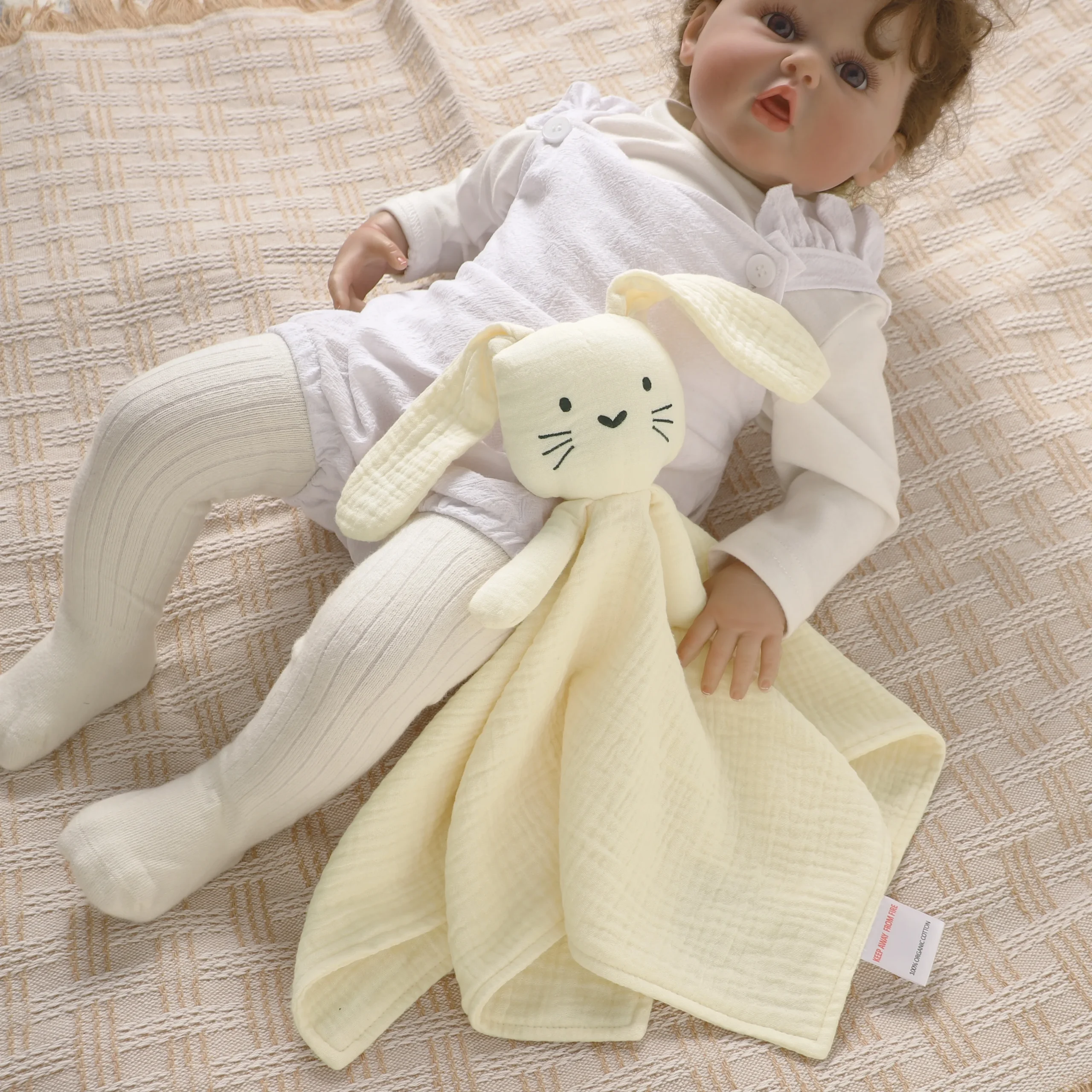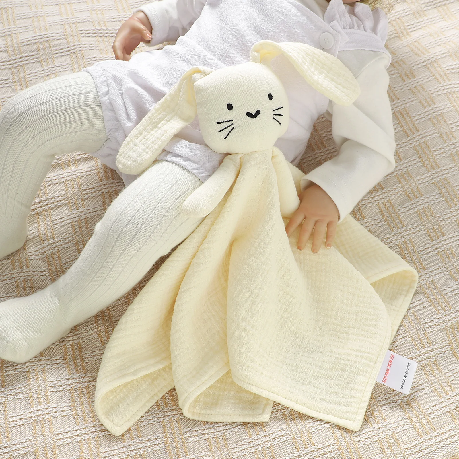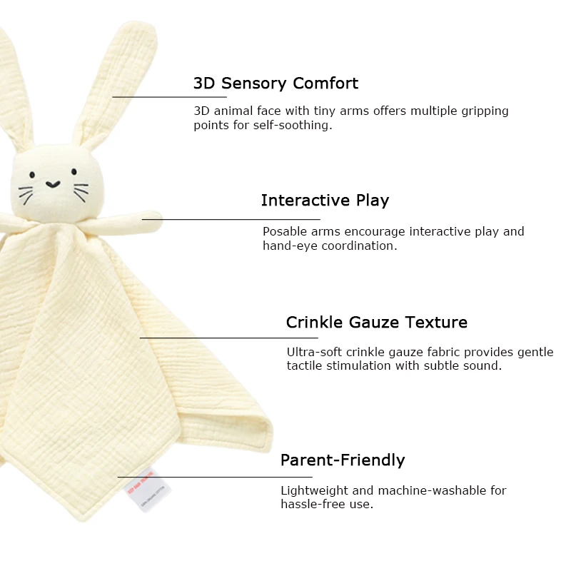 Lovey with Organic Cotton Crinkle Fabric Baby Rabbit Comforter Blanket Stereoscopic Comfort Embroidered