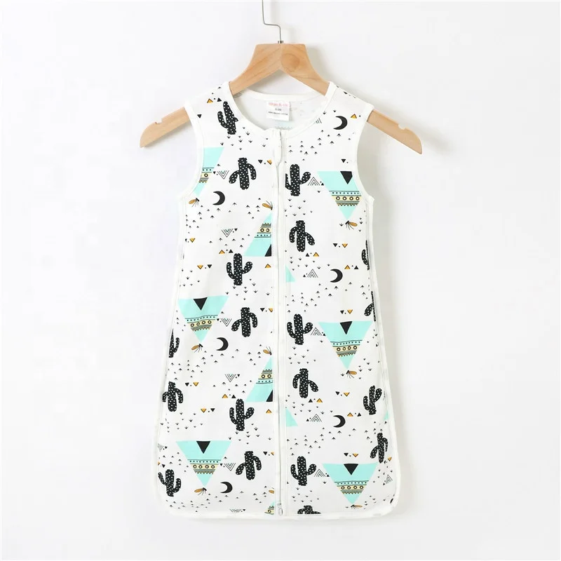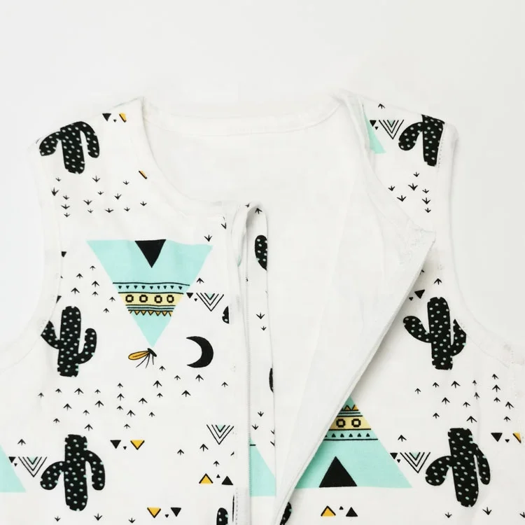 Manufacturer Newborn Printed Organic Cotton 2 Layers Baby Swaddle Wrap Double Way Zipper Knitted Baby Sleeping Sack