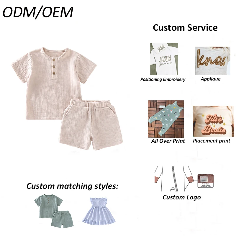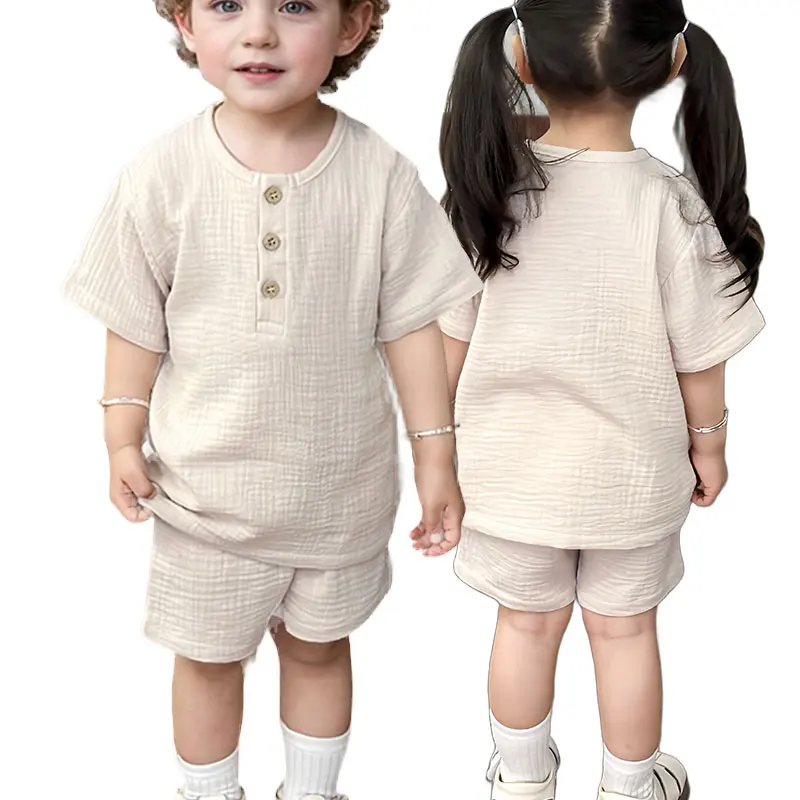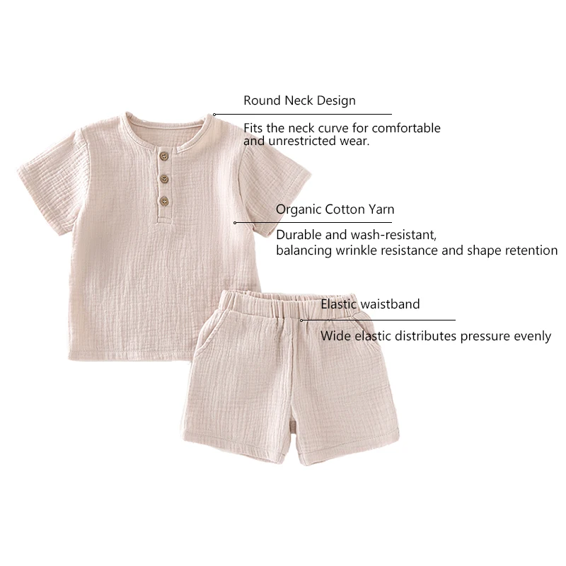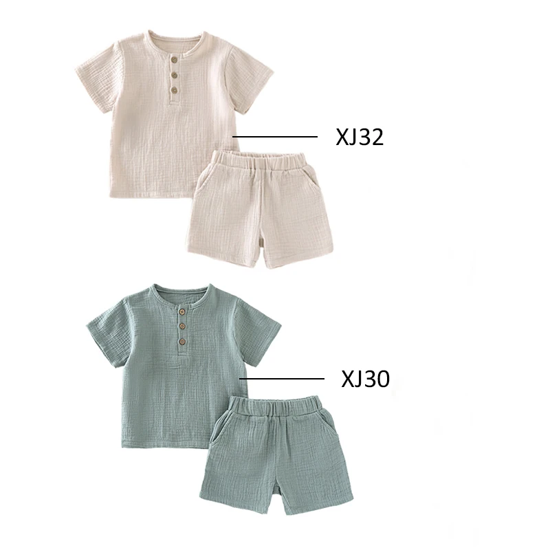 New Summer Baby Boys Organic Cotton Clothing Set Muslin Short Sleeve Baby Clothing Set