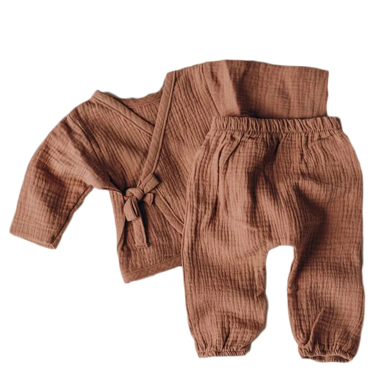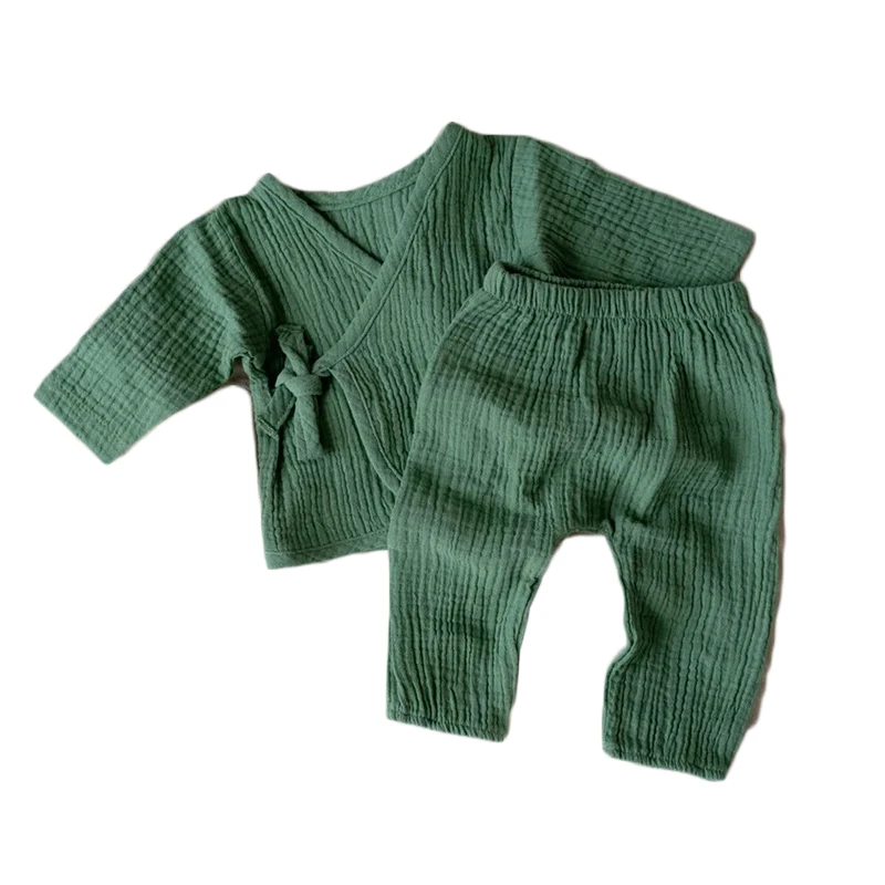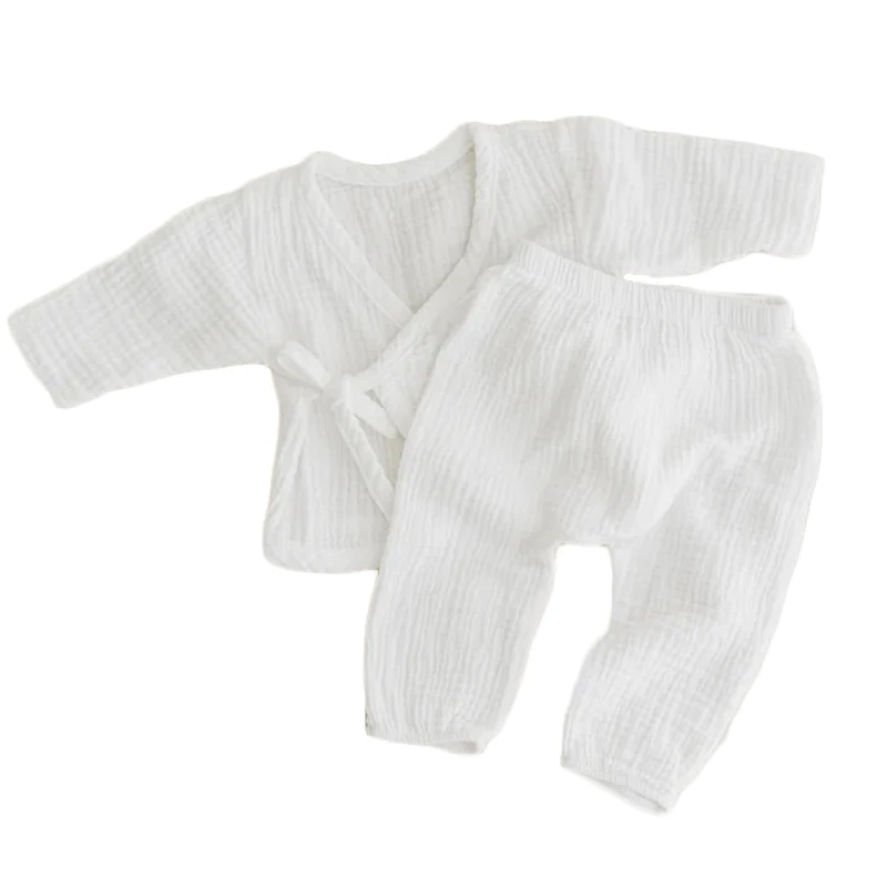 Newborn Coming Home Outfit Muslin Organic Cotton Kimono Shirt and Pants Gender Neutral Baby Clothes