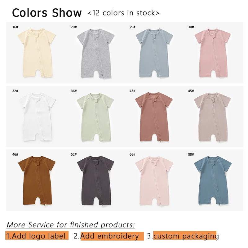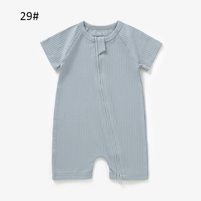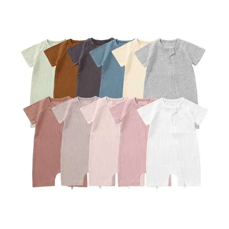 Organic Cotton Short Sleeve Rib Baby Grow Baby Sleepsuit Zipper Baby Short Rompers