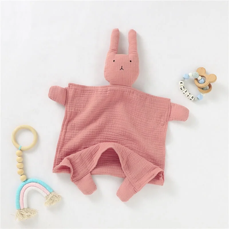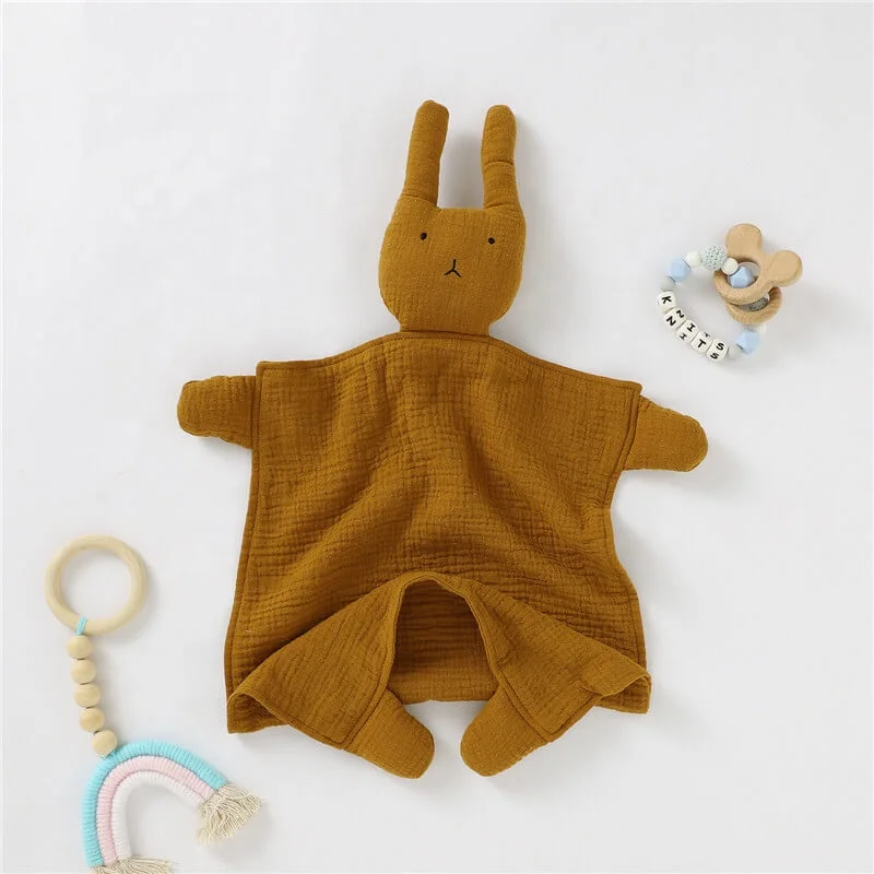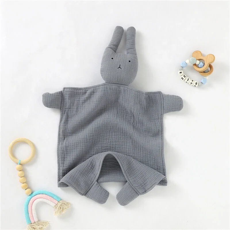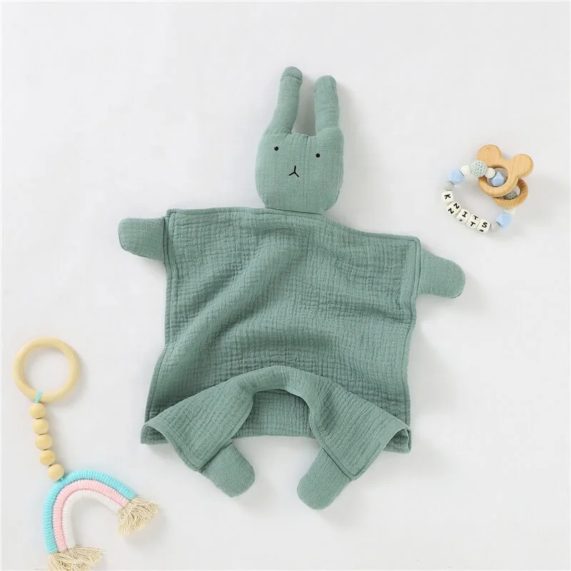 Organic Muslin Cute Baby Lovey Blanket Bunny Security Blanket Comforter Toy