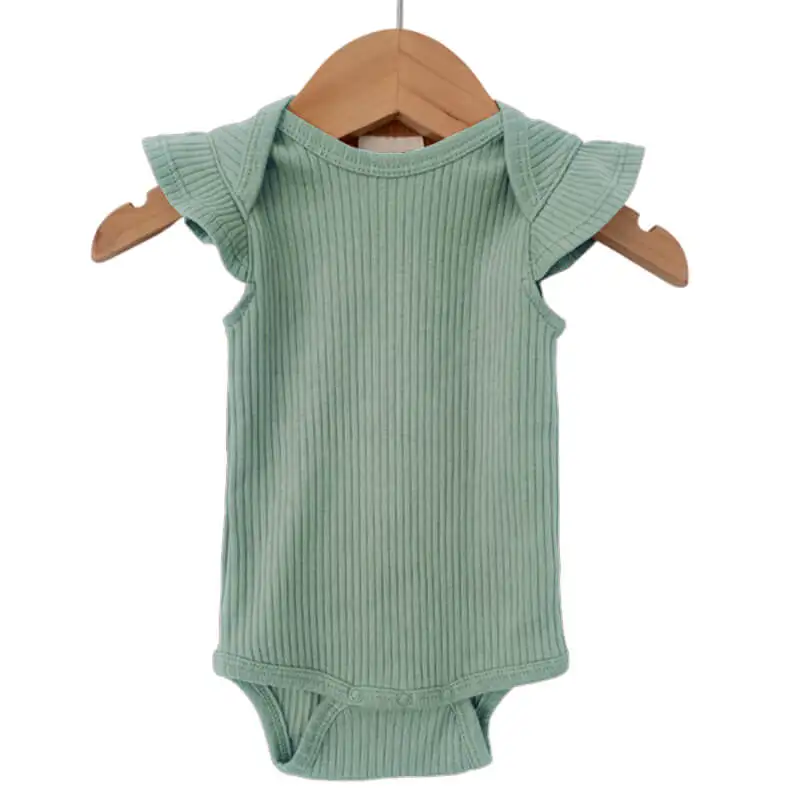 Organic Ribbed Elastic Sleeveless Summer Girls Baby Pajamas Romper