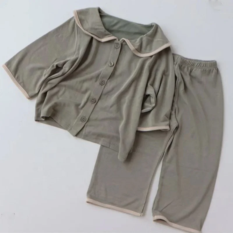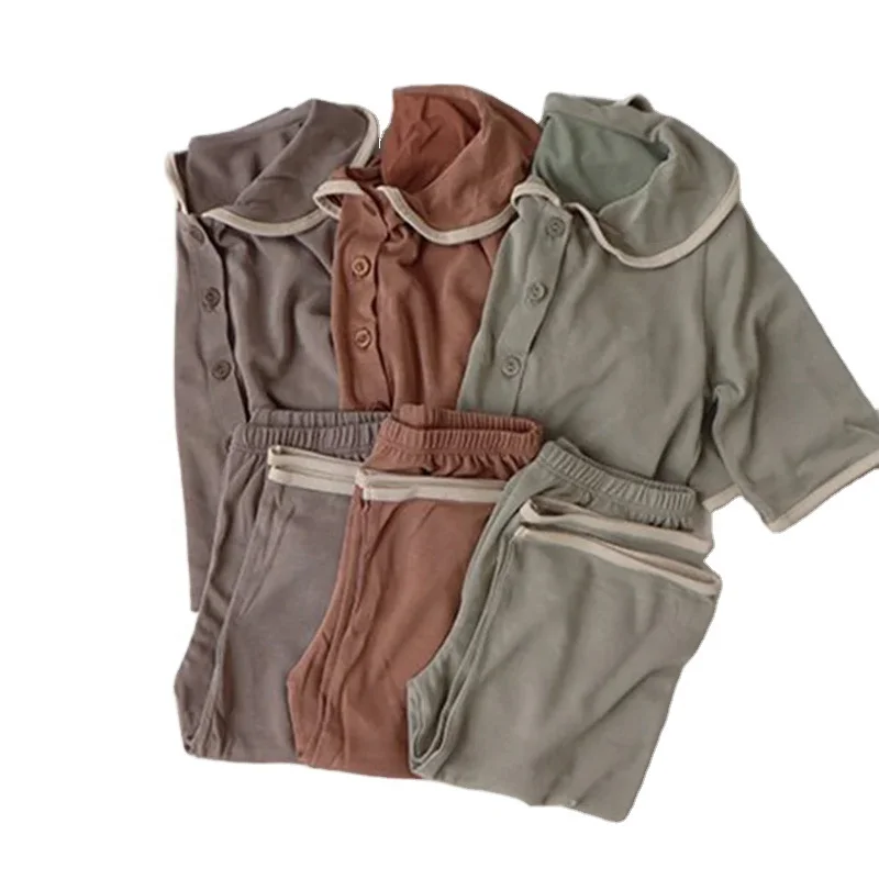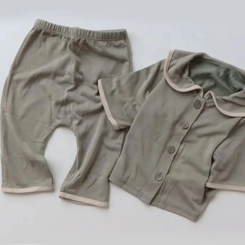 Rayon Collar Button Down Pajamas Home Wear Night Toddler Children Kids Baby Pajamas Set