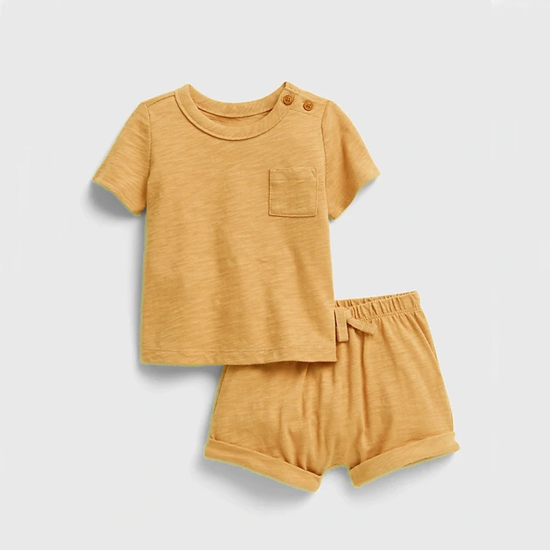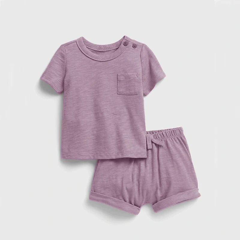 Shoulder Button Short Sleeve 100% Organic Cotton Summer Baby Clothing Set