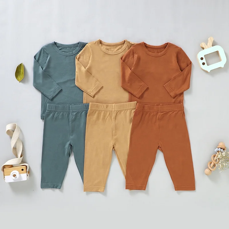Skin-friendly Cool Feeling Baby Bamboo Clothes Set Long Sleeve Toddler Pajamas Sets