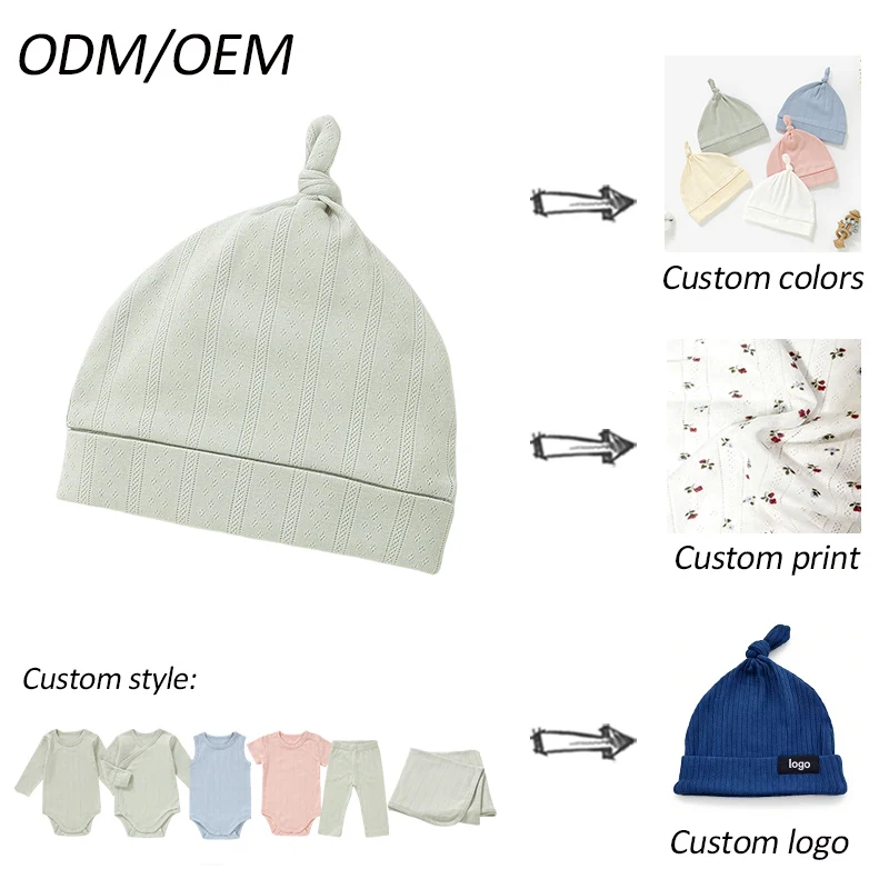 Soft and Comfortable Baby Hat Pointelle Knitted Style Newborn Cold Protection Hat with Cute Knot Design Beanie
