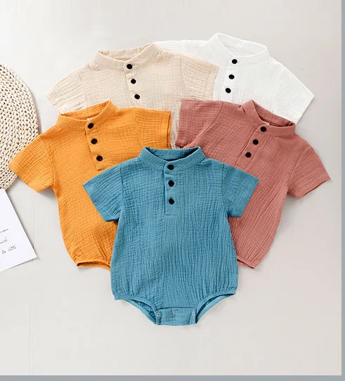 Summer Short Sleeve Legless Baby Romper 100% Organic Cotton Muslin