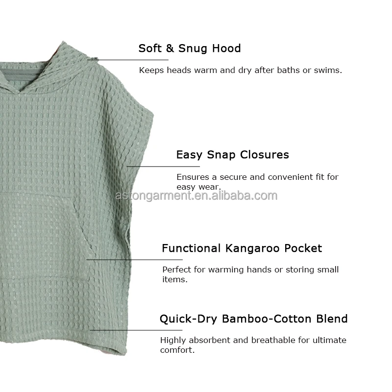 Super Soft Eco-Friendly Bamboo Waffle Baby Hoodie Bathrobe Beach Blanket for Home Use