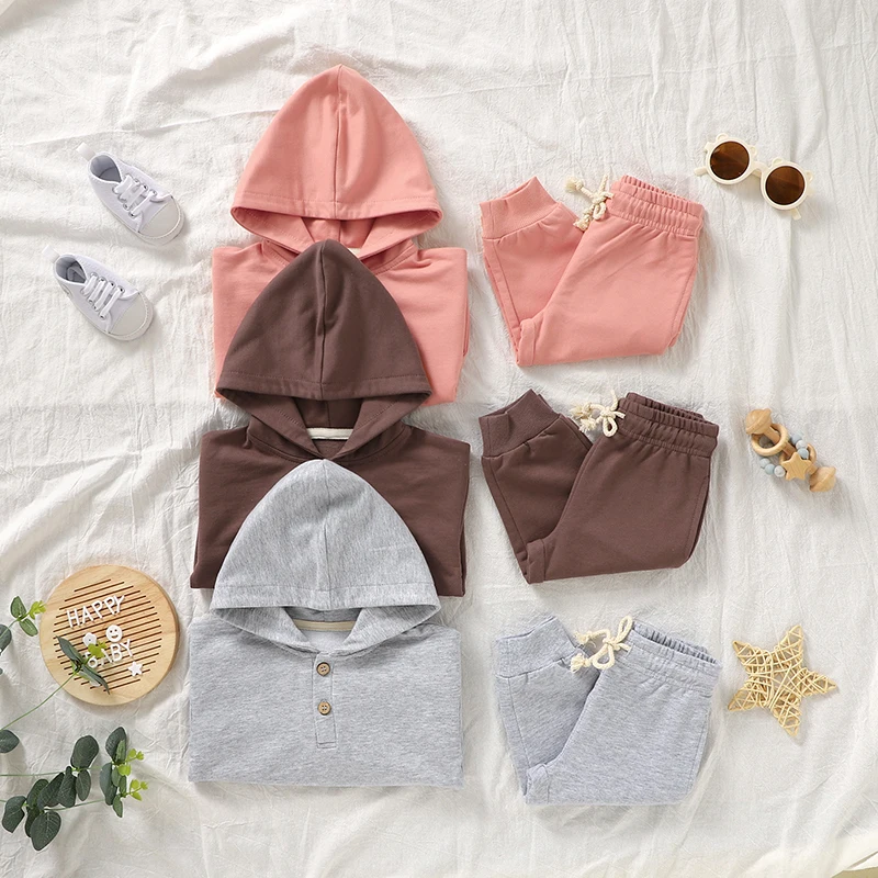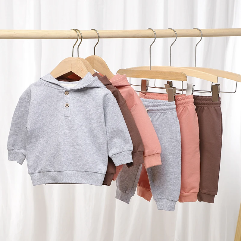 Wholesale 100% Organic Cotton Solid Color Baby Clothing Sets Hoodies Sweatshirts and Sweatpants Joggers