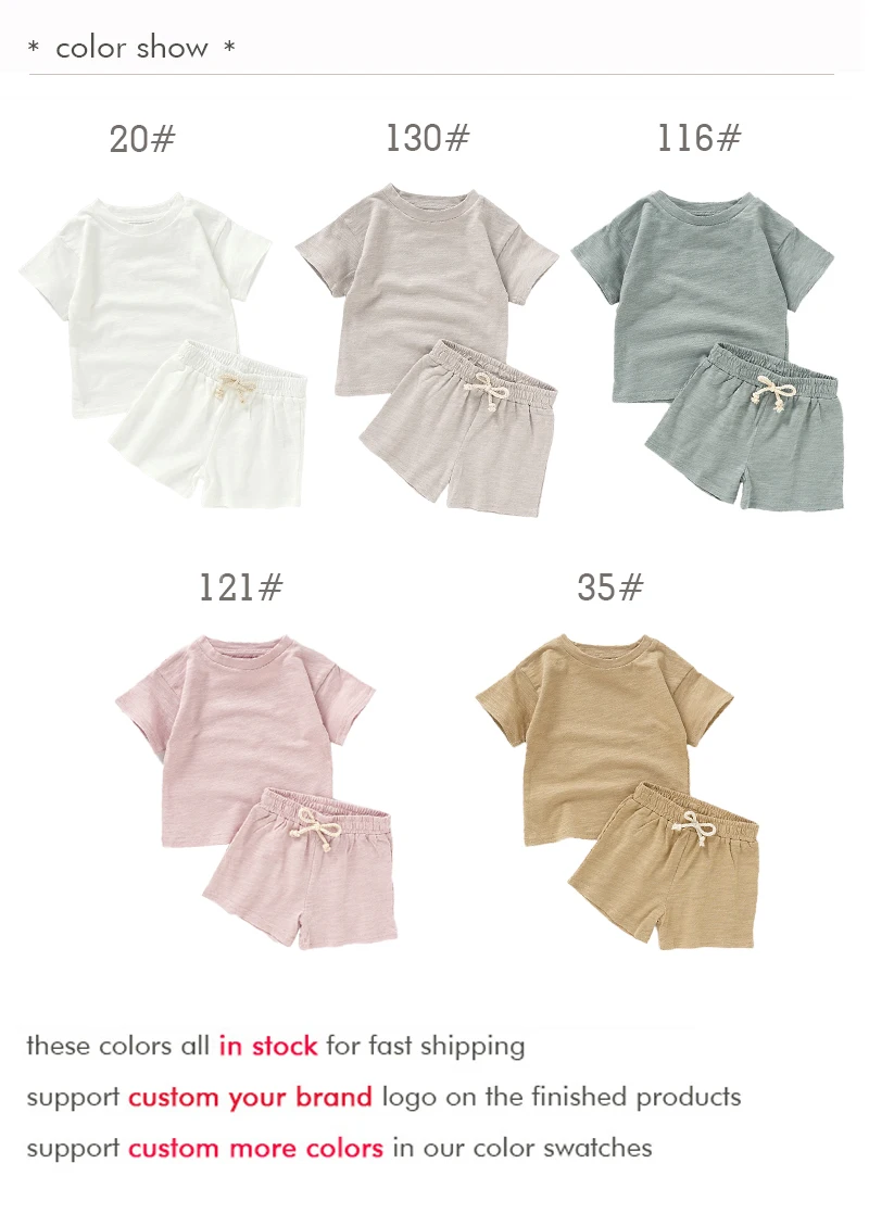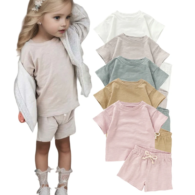 Wholesale Baby Clothing Factory Supply 100% Organic Cotton Baby Girls Shirt and Shorts Set Kids Children Outfit Clothing Set