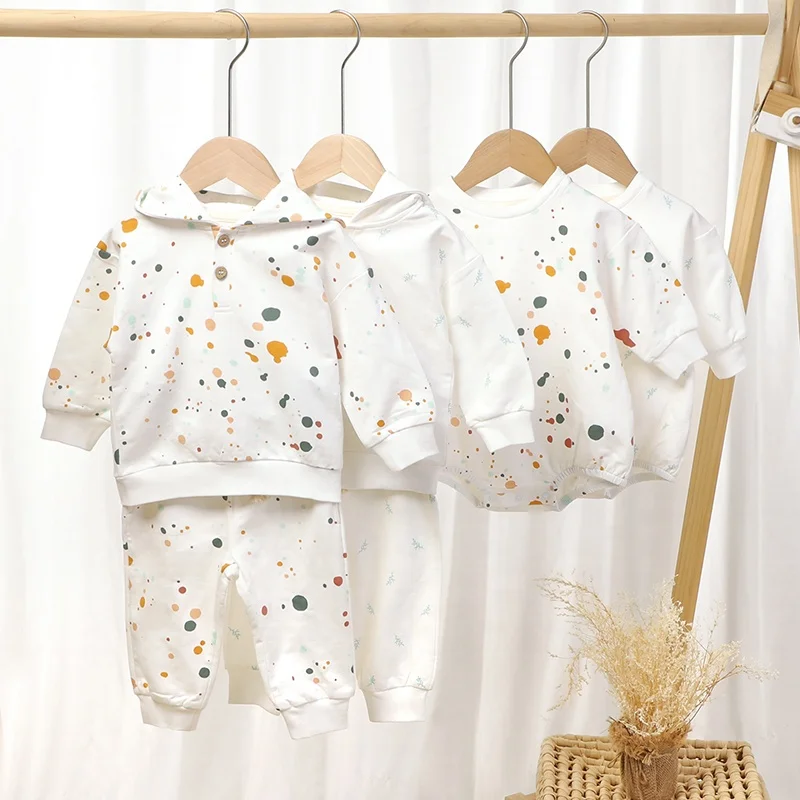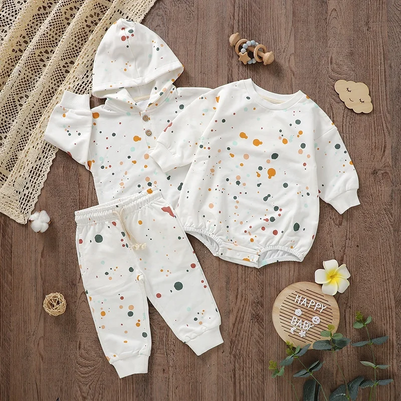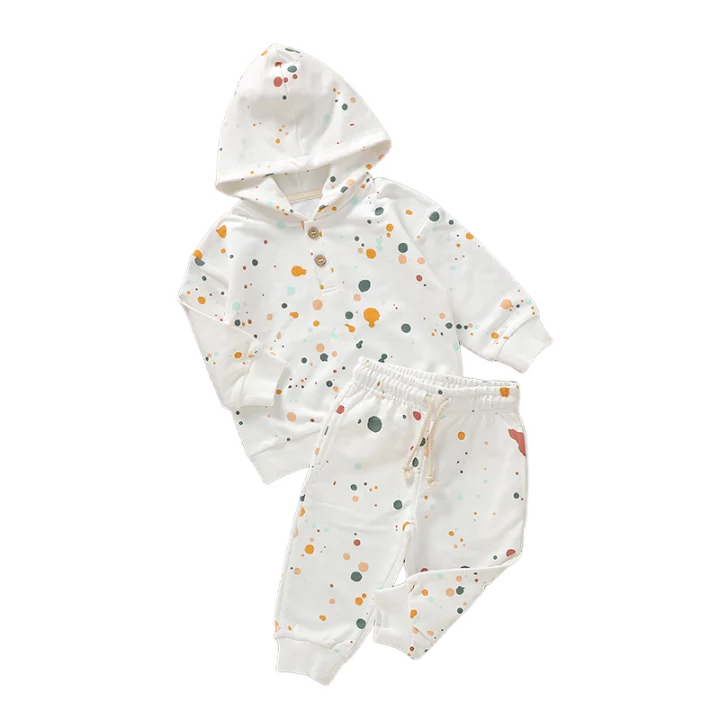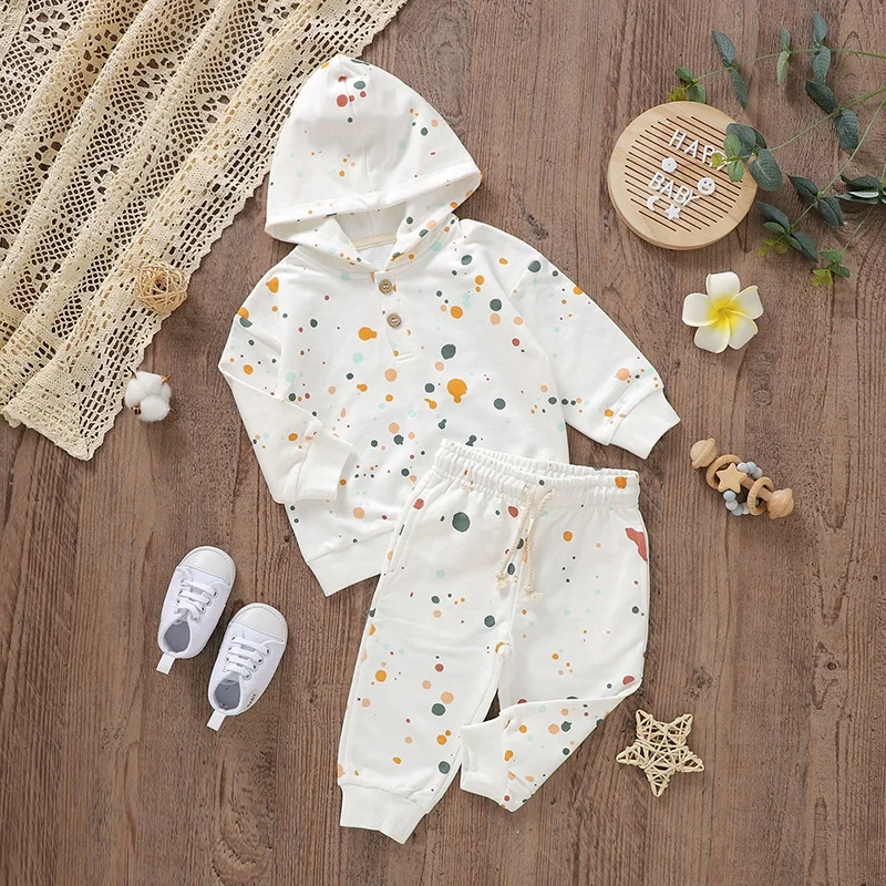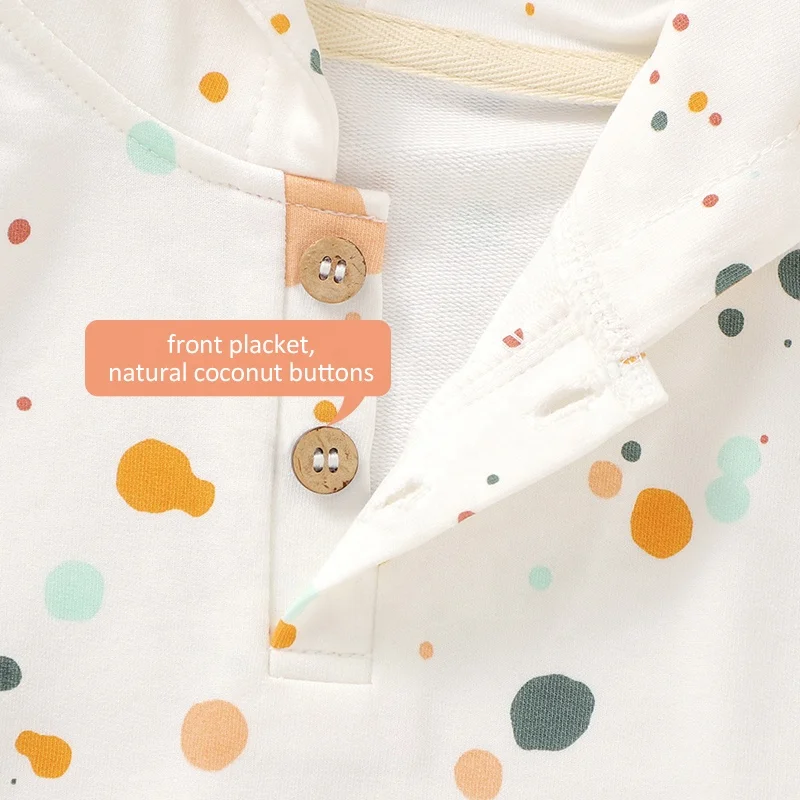Wholesale Cute Colorful Polka Dot Printed Cotton French Terry Baby Hoodie Set