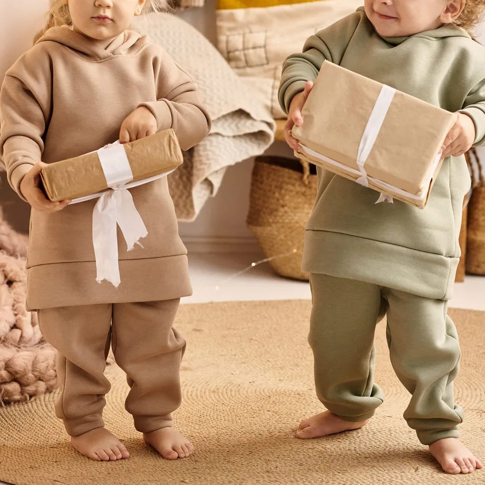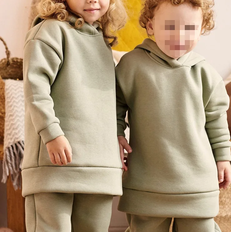 Wholesale Fall Warm Fleece Fabric Baby Kids Clothes Set Children Hoodie Set