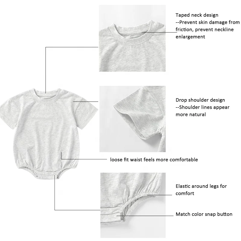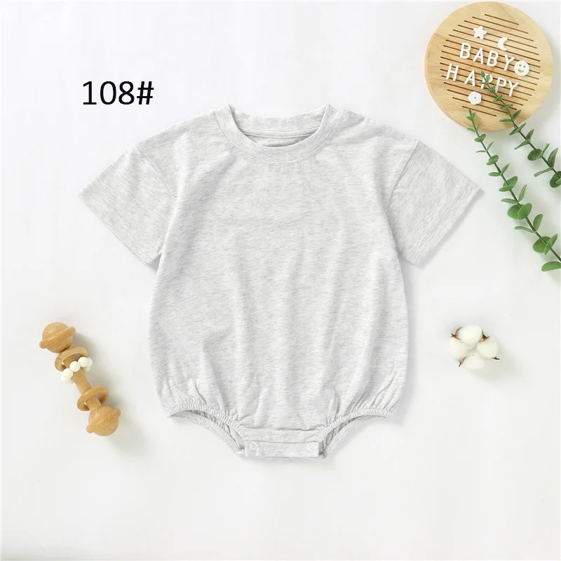 Wholesale Knit Cotton Girls Drop Shoulder Short Sleeve Plain Baby Bubble Romper