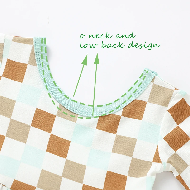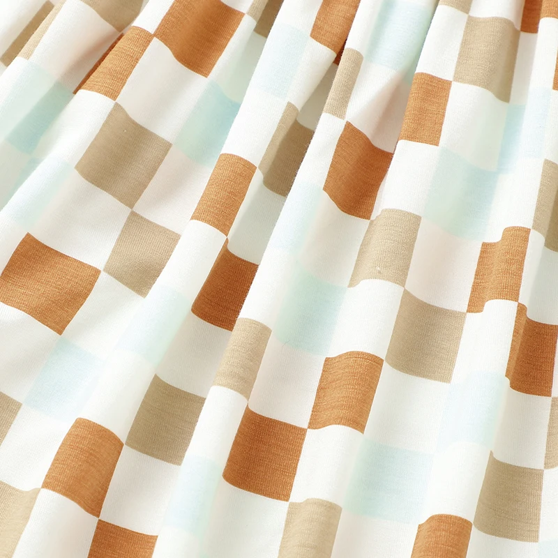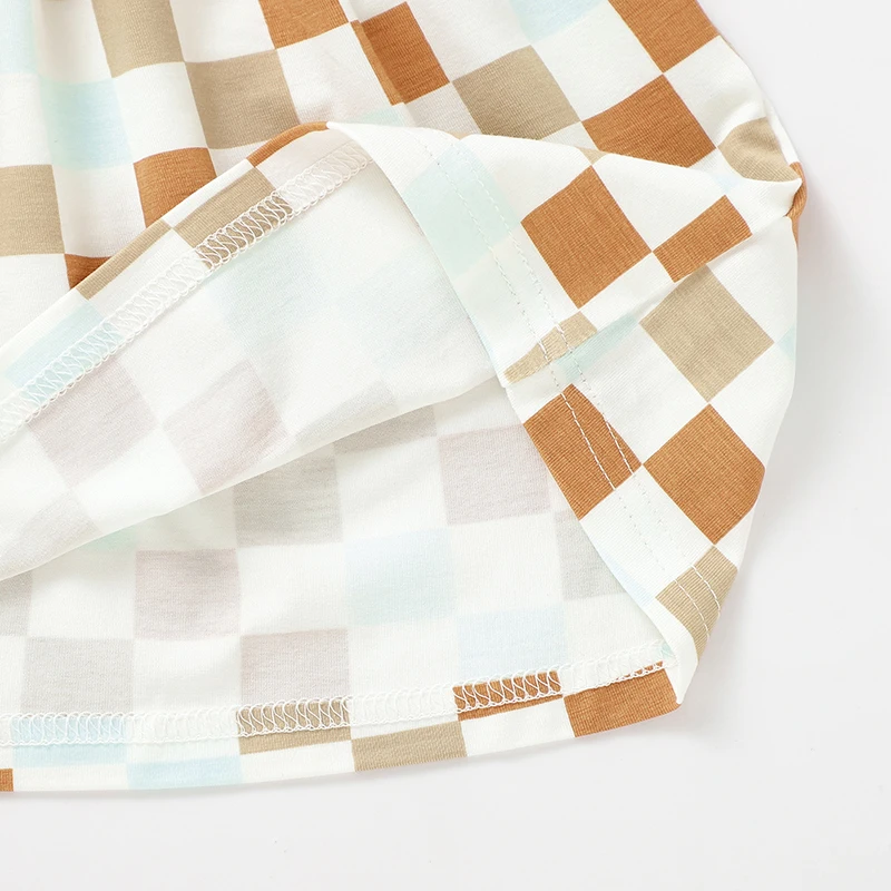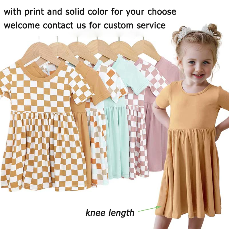 Wholesale Print Checkered Girls Dresses Summer Short Sleeve Baby Bamboo Dresses