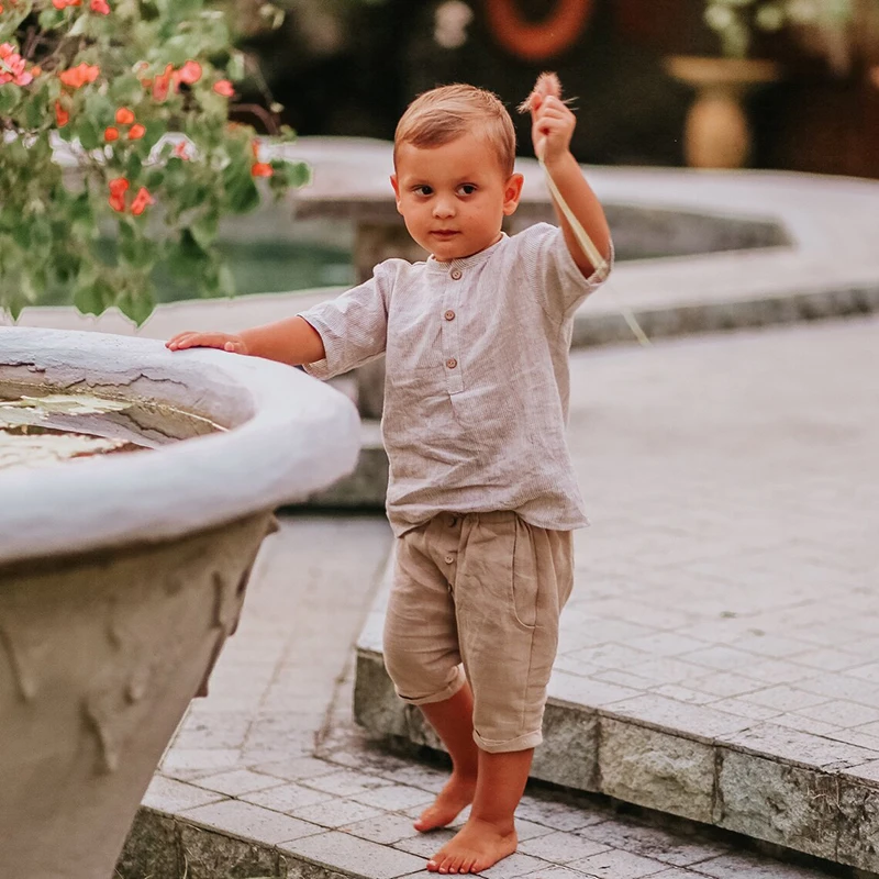 Be the first to review “Wholesale Short Sleeve Front Placket Linen Tops Baby, Summer Baby t Shirt”