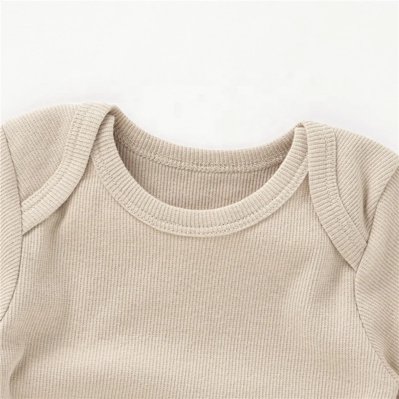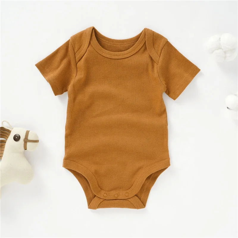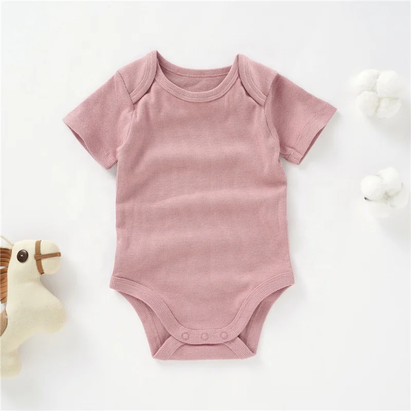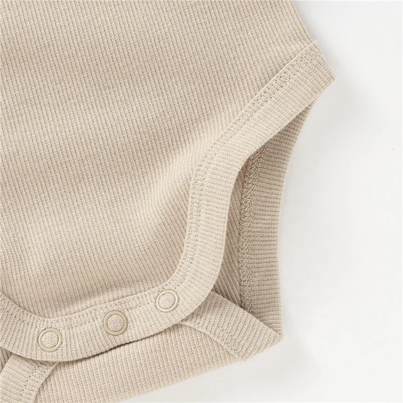 Wholesale Soft Neutral Solid Envelope Short Sleeve Organic Cotton Baby Bodysuit Romper