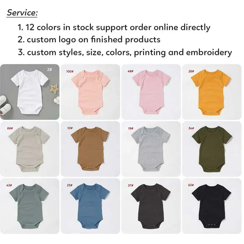 Wholesale Solid Colors 100% Organic Cotton Short Sleeve Summer Toddler Baby Bodysuit Rompers